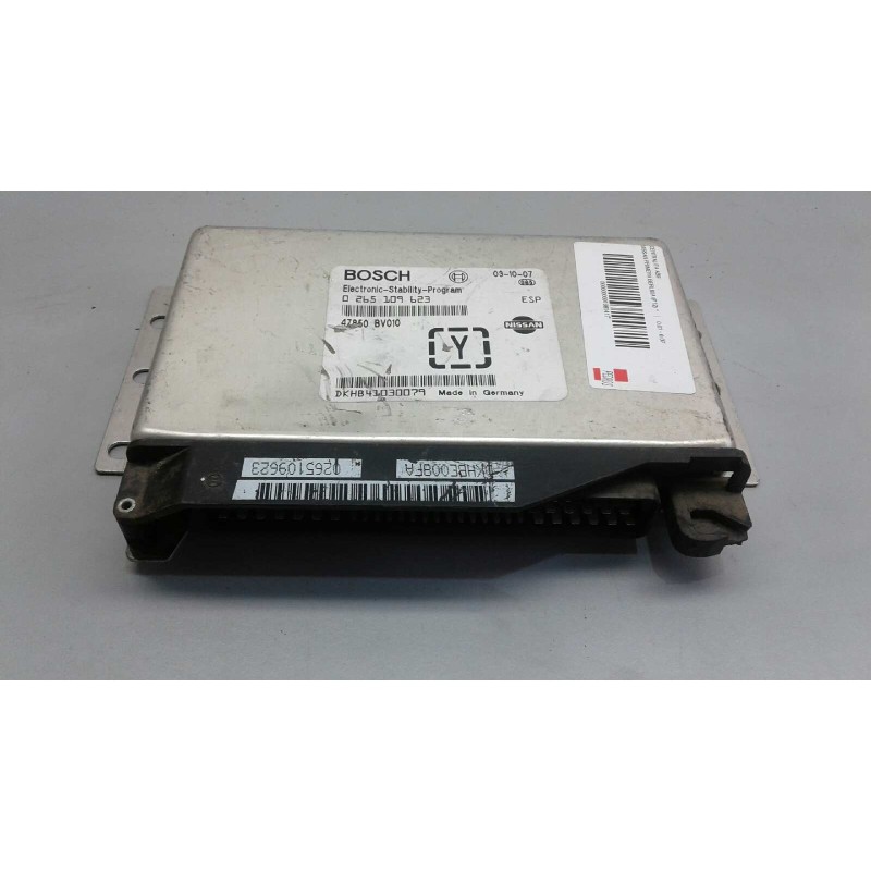 *La ECU Bosch 0265109623 es una unidad de control del sistema ESP (estabilidad) utilizada en el Nissan Primera P12, con precios que van desde 20 € en estado usado hasta más de 1.190 € nueva en distribuidores especializados.Aquí tienes los detalles completos:?? Vehículos compatiblesNissan Primera Berlina P12 (versión europea)Específicamente asociada al sistema de estabilidad (ESP), no al control del motor?? Características técnicasReferencia Bosch: 0265109623OEM Nissan: 47850BV010Tipo de unidad: Módulo de control ESP (Electronic Stability Program)Función: Control de estabilidad del vehículo, gestión de sensores de giro, aceleración lateral, y presión de frenoUbicación: Generalmente montada cerca del ABS o en el compartimento del motor?? Precio. Recambio de centralita abs para nissan primera berlina (p12) referencia OEM IAM 0265109623 47850BV010 DKHB41030079